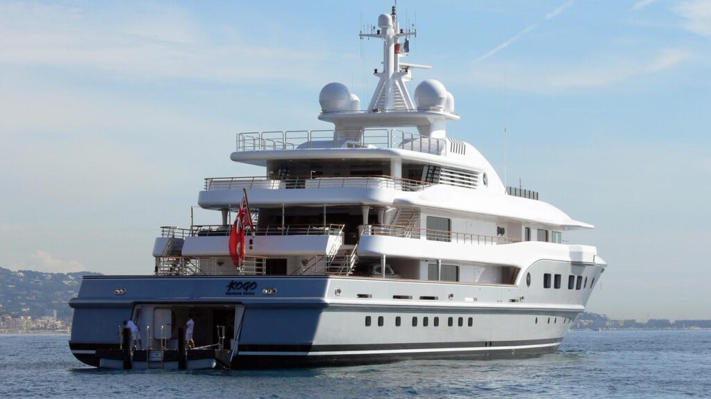 El yate de lujo Kogo está equipado con un gran número de equipos para deportes acuáticos, que incluye una limusina de 7,8 metros, otras 6 embarcaciones de diferentes tamaños y cuatro motos de agua Kawasaki para 2 personas. Los estabilizadores de velocidad cero (anclados) y el sistema de posicionamiento dinámico de movimiento cero garantizarán la máxima comodidad en todo momento.